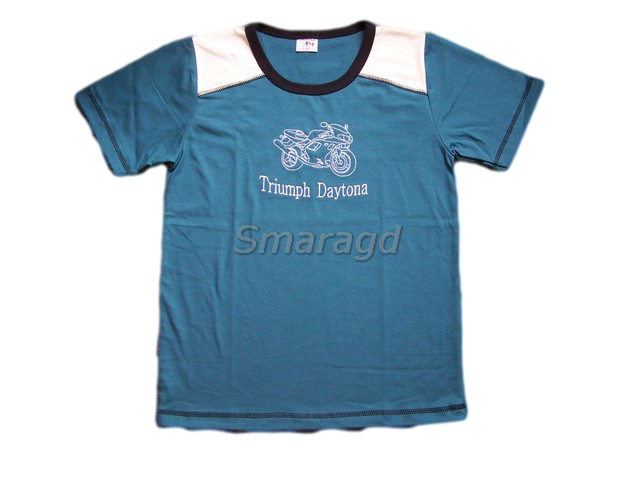 Materiál: 100% bavlna, jednolícní úplet. Na předním díle výšivka Triumph Daytona. Barva tm. zelená + vanilka. Výšivka bílá a ozdobné prošítí černé.